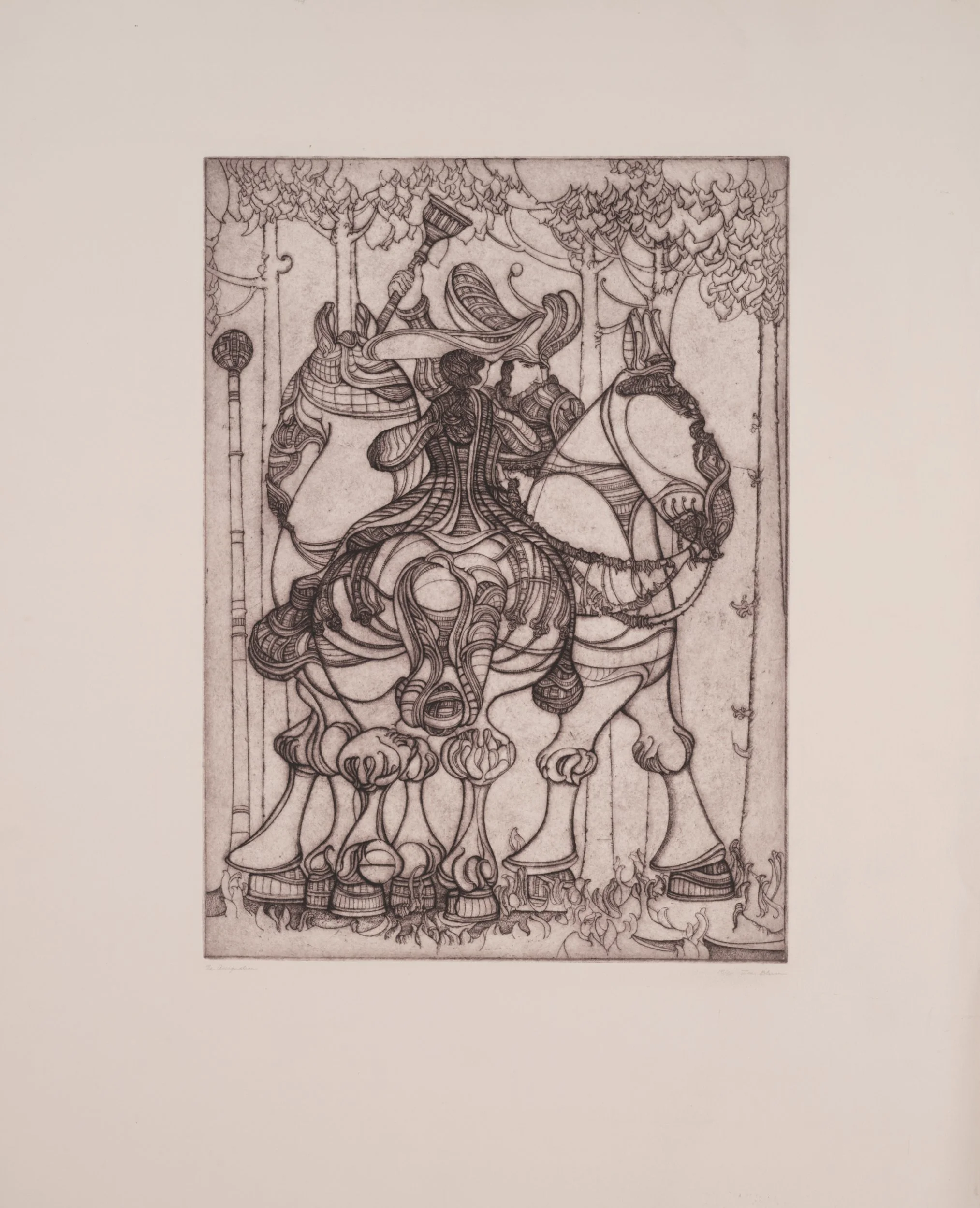 Fat Horse Fat Rider Etching Sepia (13.5" x 17")