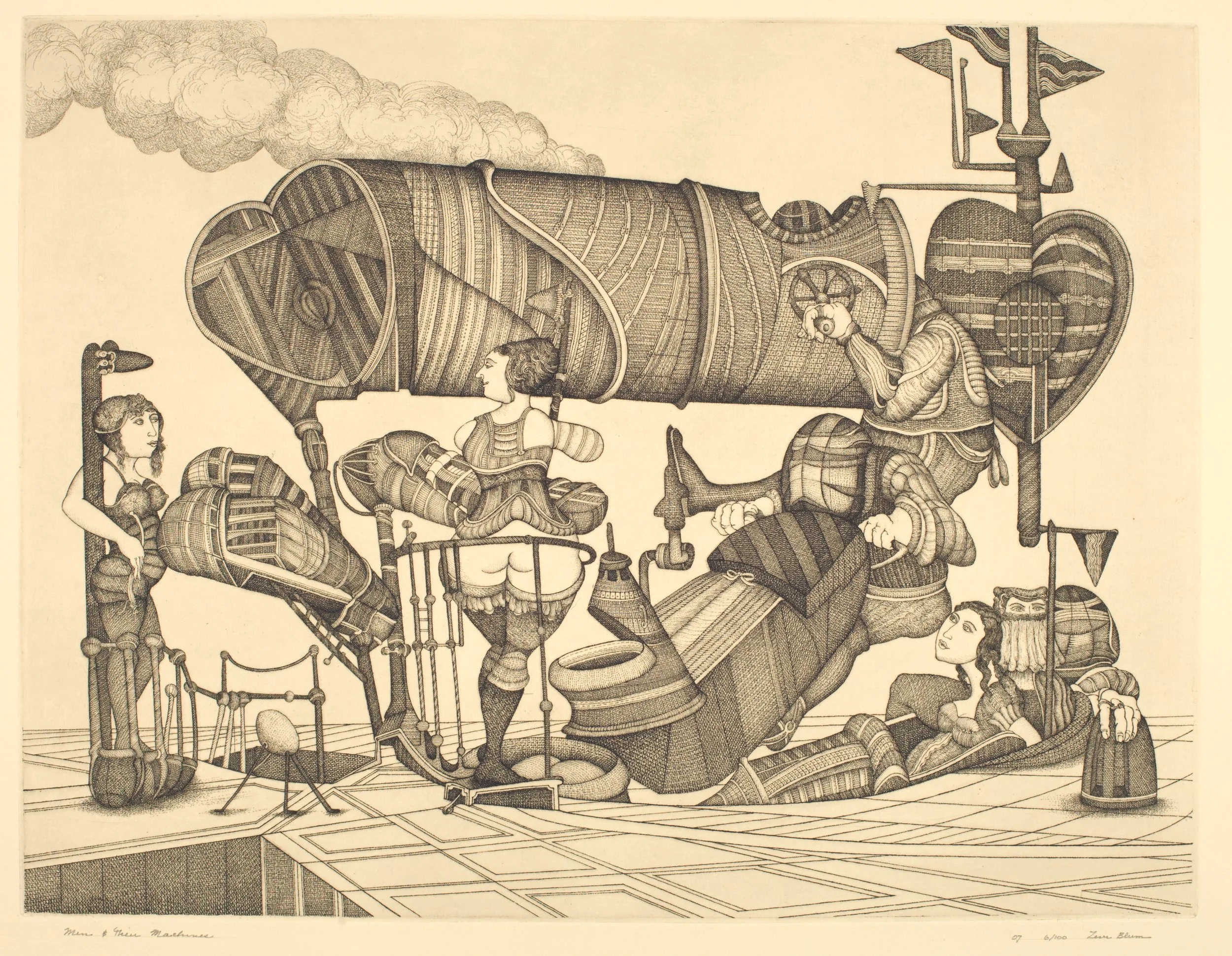 Men and Their Machines Etching Sepia (23.5" x 17.5")